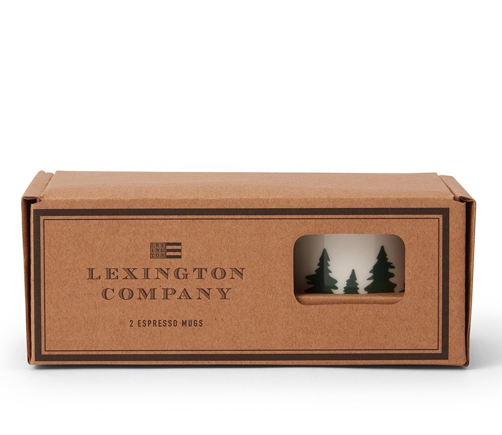 Sødt sæt med 2 espressokopper med det eksklusive Forest-print og håndmalet øverst. De kommer i en brun æske med Lexington-logo med en lille åbning i siden, så du kan se produktet. Så enkle og dekorative, selvfølgelig perfekte til espresso, men også bruges som små skåle med f.eks. rosiner og mandler.