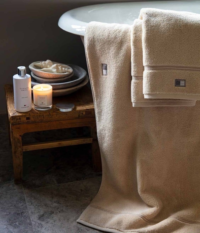 De skønne Lexington Hotel håndklæder er en daglig fornøjelse, så bløde og delikate. Dekorative på badeværelset og fantastisk holdbare. Her i den beige udgave med beige kant og Lexington-Logo-Label.