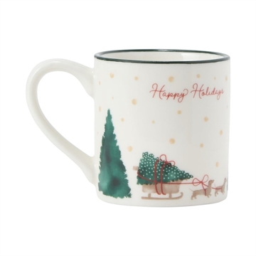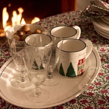 Det smukke, klassiske og traditionelle Julekrus i eksklusivt Holiday 2025 design. Med håndmalet grøn stribe øverst, og selvfølgelig med "Winterhouse"-motivet, som er gennemgående i dette års Holiday Collection. Så fint f.eks. sammen med de nye små fade med Winterhouse- eller Tree-design.