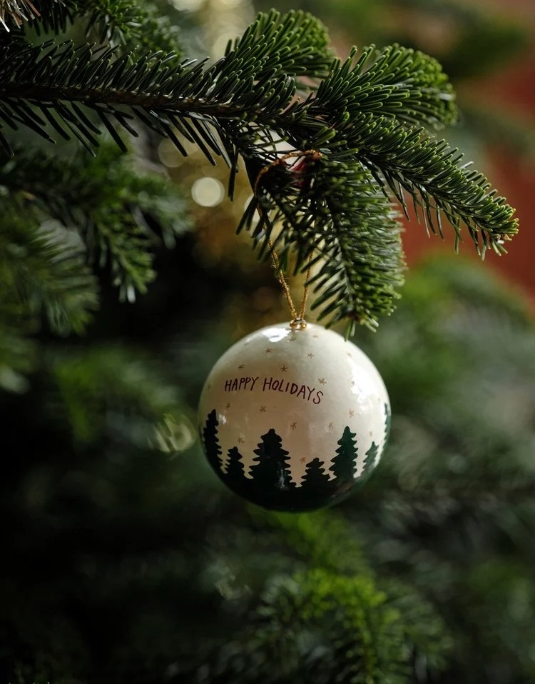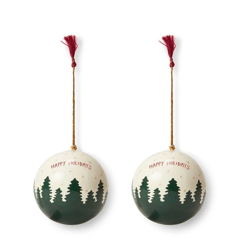 Lexington Papier Maché Christmas Happy Holidays Ornament, 2 stk. i æske hvid/grøn