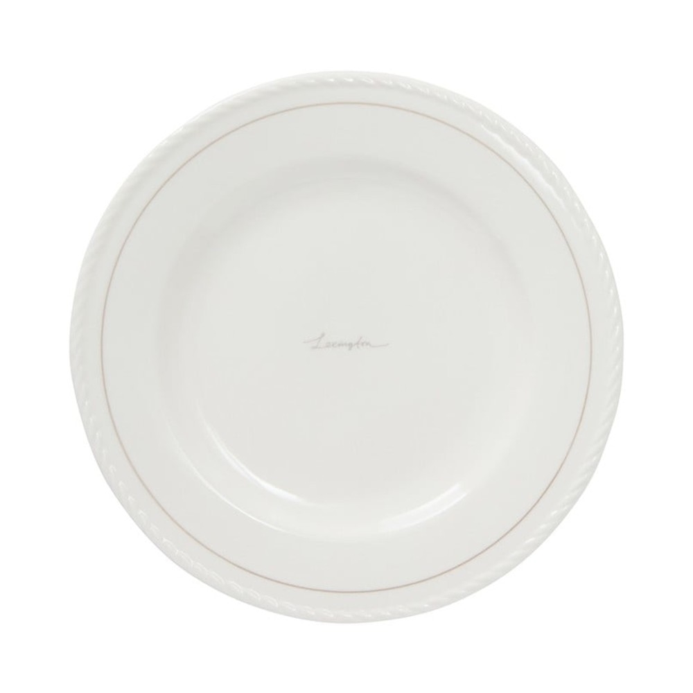 Lexington middags-tallerken er fremstillet af fint porcelæn og kombinerer tidløs elegance med varig holdbarhed. Det har en delikat struktur med rebdetaljer, håndmalede kantstriber og en blank glasurfinish. Denne tallerken er meget modstandsdygtigt over for pletter, varme og ridser. Et raffineret valg til ethvert køkken.