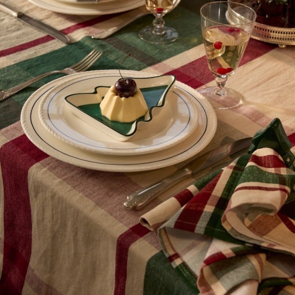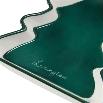 Så fint lille fad med Holiday 2025 "Pinetree".design fremstillet i stentøj med blank glasurfinish.