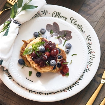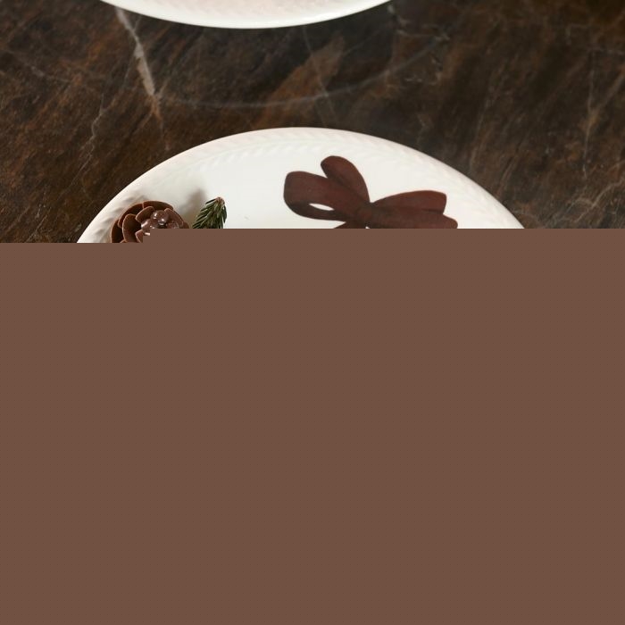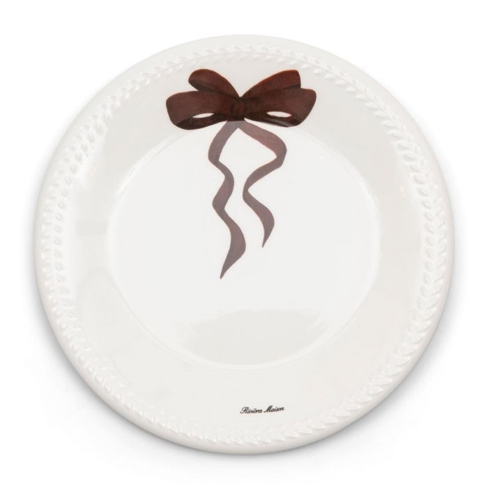 Så fin "Juletallerken" fra Riviera Maison med sløjfe og logo. Perfekt til forret, dessert eller æbleskiver i månederne op til jul. Der findes matchende skål i serien.